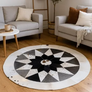 Eclipse jumeric Round Cowhide Patchwork Rug