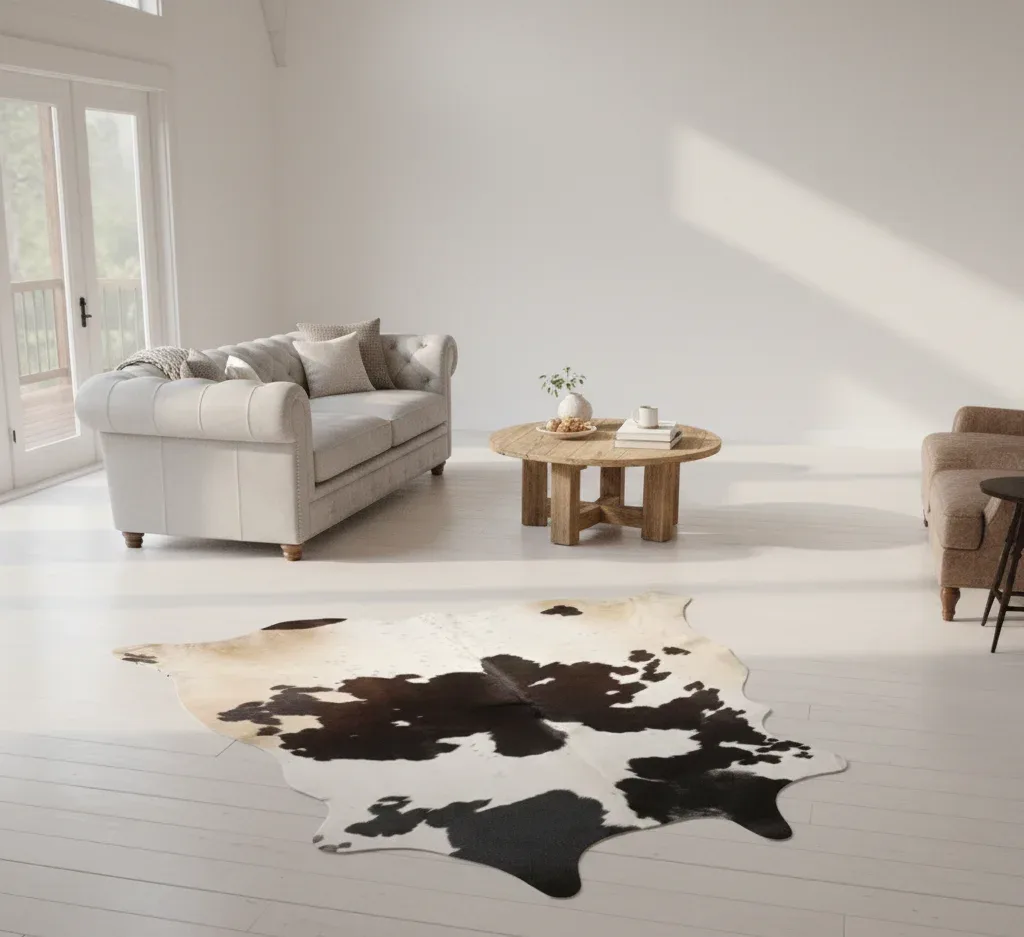 Cowhide Rug. Each piece is 100% genuine and unique, with natural patterns that can’t be duplicated. Perfect for living rooms, offices, or statement décor.