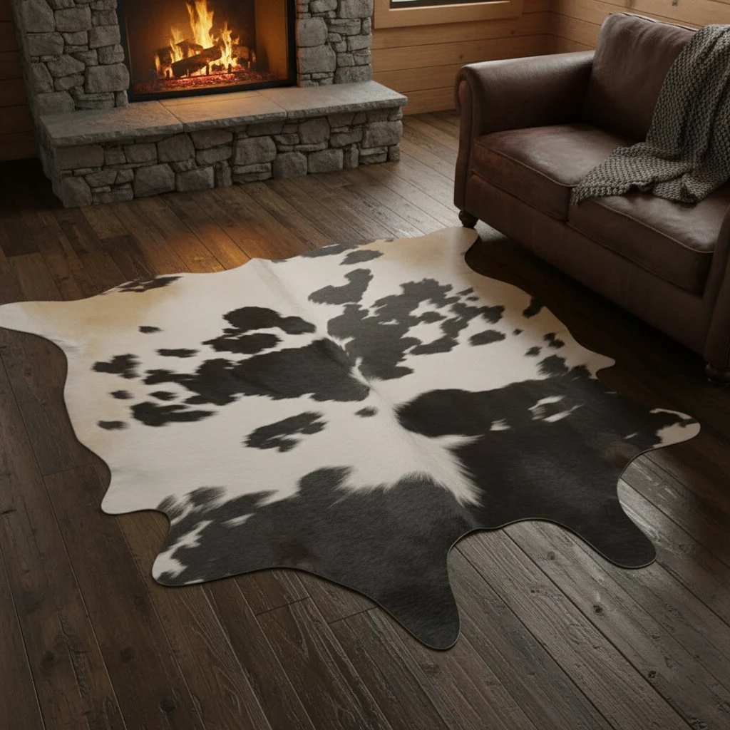 Cowhide Rug. Each piece is 100% genuine and unique, with natural patterns that can’t be duplicated. Perfect for living rooms, offices, or statement décor.