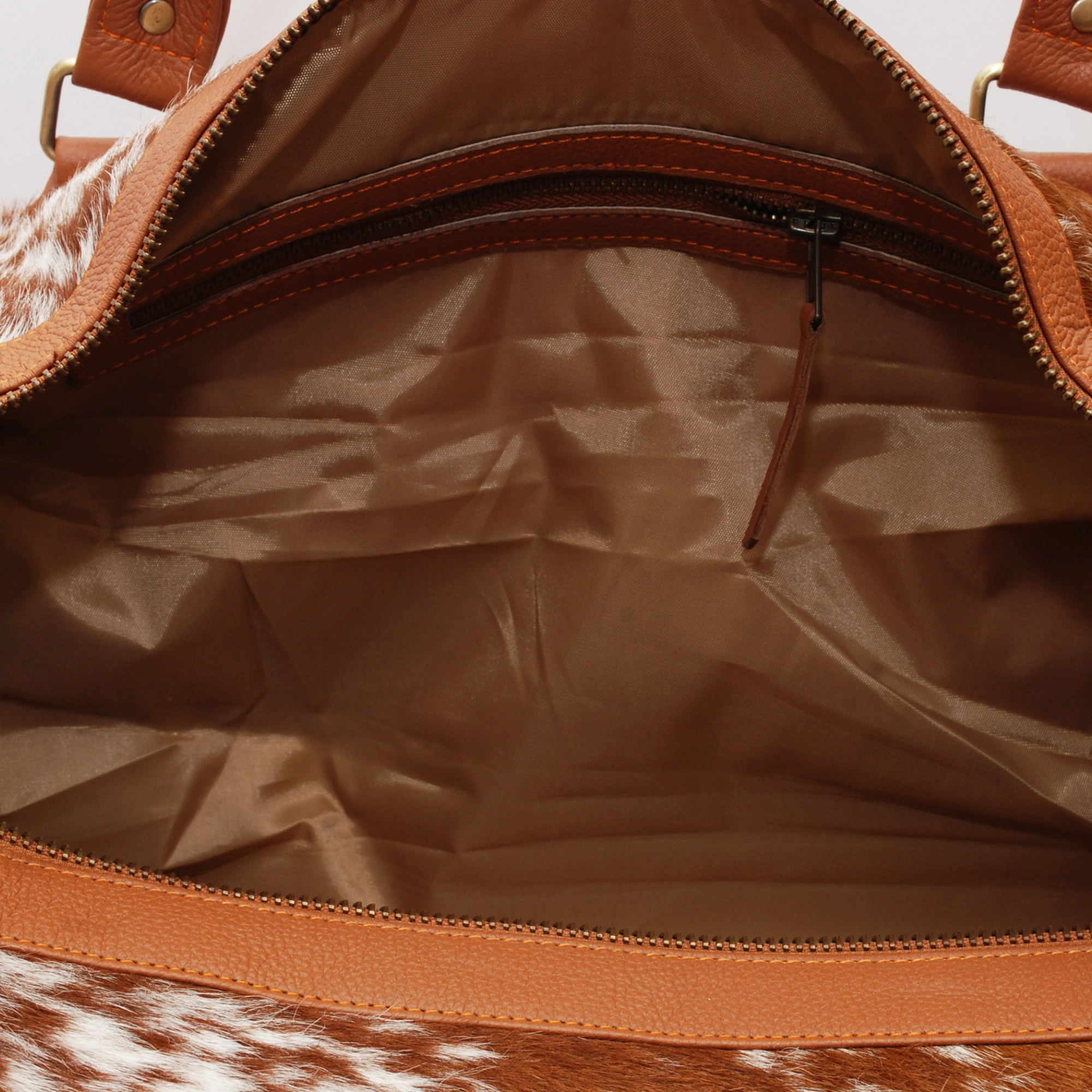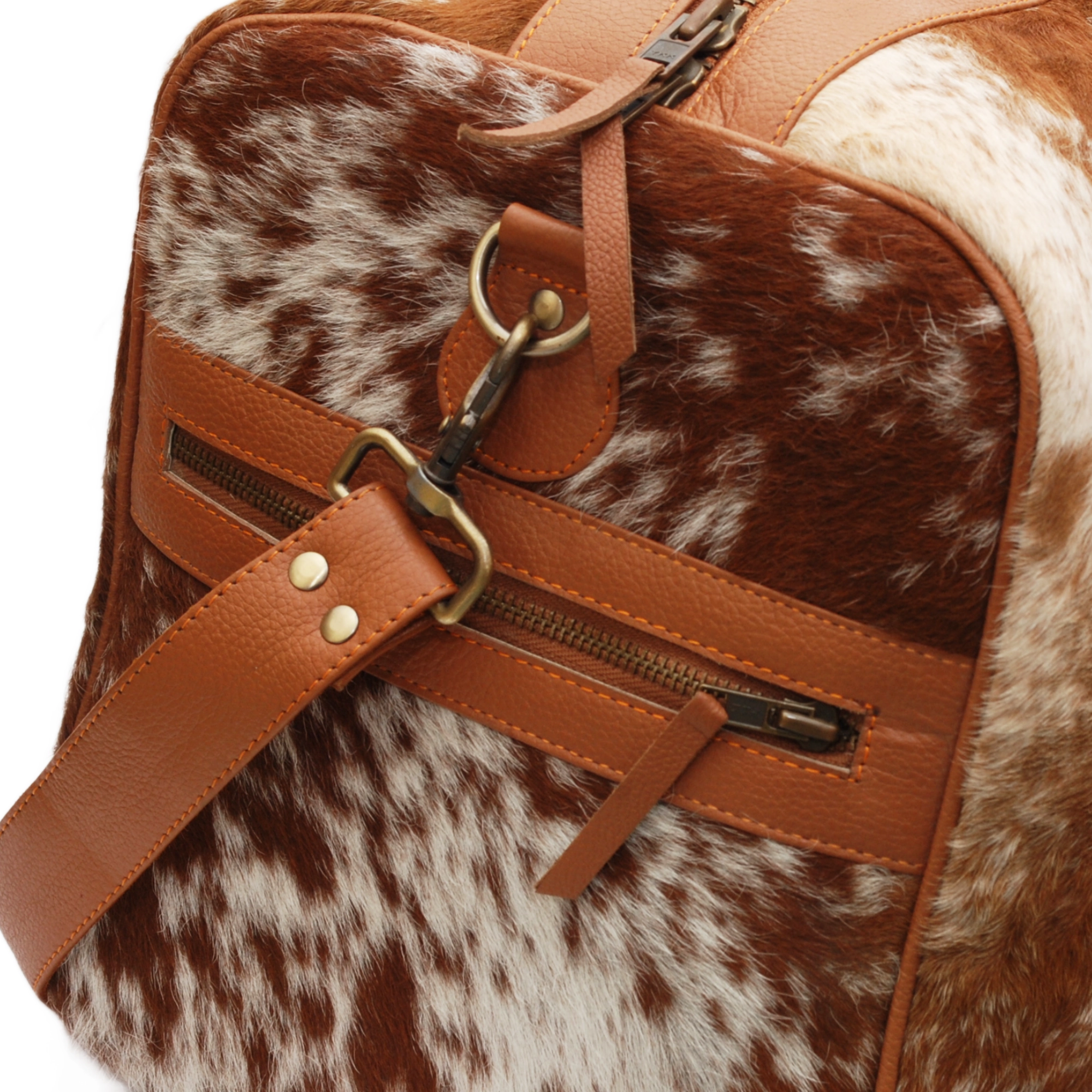 Each cowhide hair-on duffle bag boasts unique natural patterns and textures, making every piece one-of-a-kind. The distinct variations in the cowhide ensure that no two bags are the same.