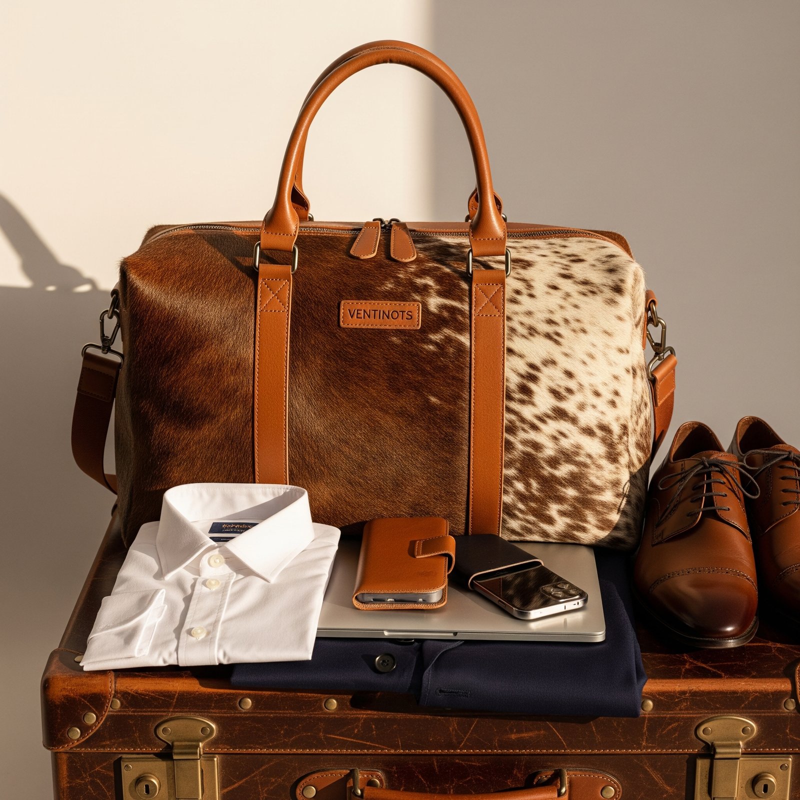 At Ventinots, we take pride in offering the finest cowhide hair-on duffle bags on the market. Each bag is meticulously crafted from premium cowhide leather, showcasing unique natural patterns and textures that make every piece truly one-of-a-kind. Our commitment to quality ensures that our duffle bags are not only stylish but also incredibly durable and functional. Choose Ventinots for unparalleled craftsmanship and timeless elegance.